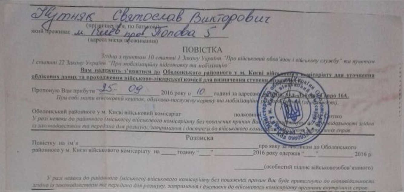 "Кутняк упорно скрывается от военкомата и игнорирует повестки", – сообщил он.